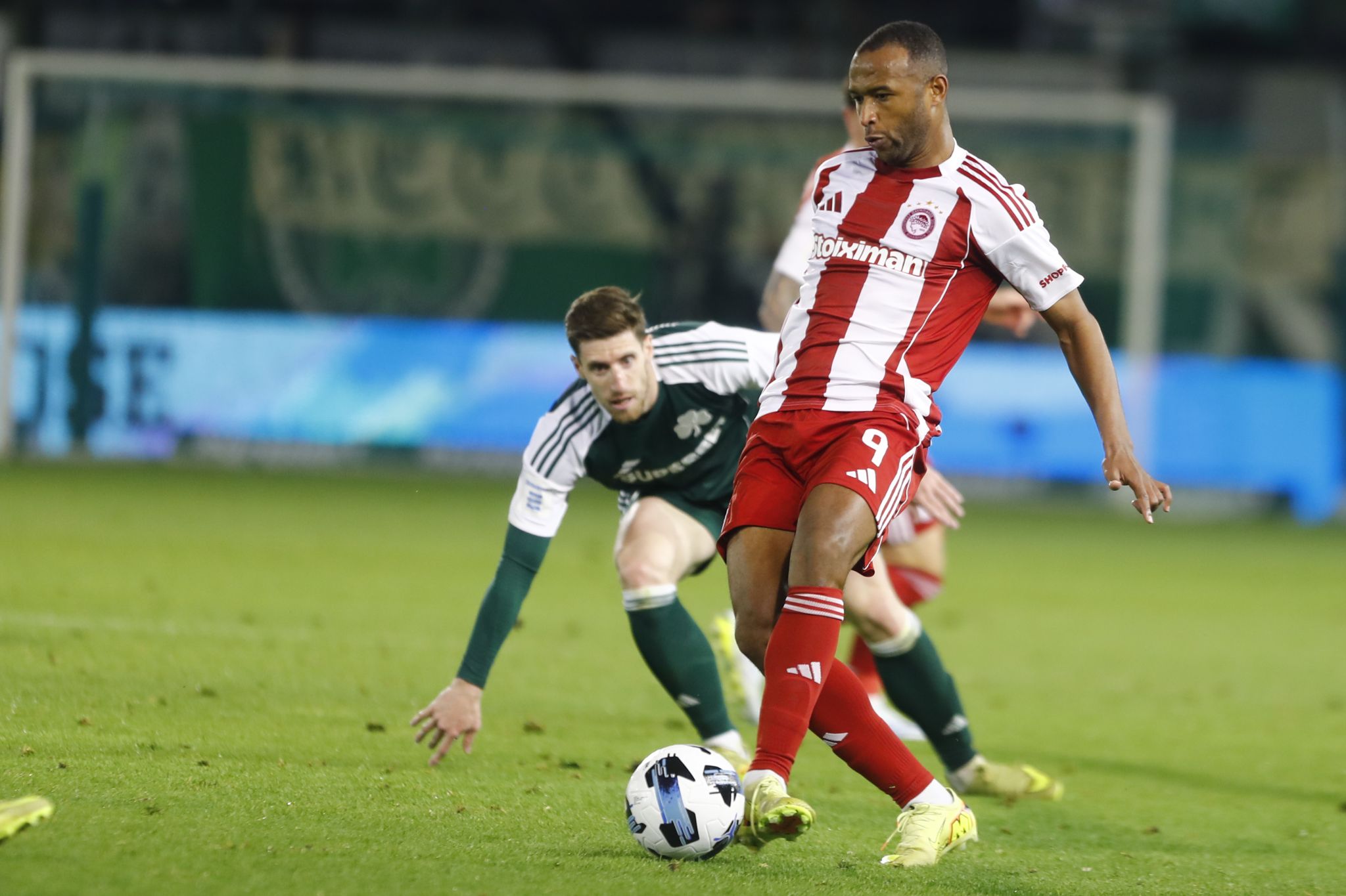 Στο πρώτο λεπτό των καθυστερήσεων ο Ολυμπιακός έβαλε το δεύτερο γκολ στην αναμέτρηση. Συγκεκριμένα, στο 45+1′ ο Τσικίνιο πήρε την κεφαλιά έξω από την περιοχή, ο Ροντινέι κατέβασε την μπάλα με κοντρόλ, μπήκε στην περιοχή του Παναθηναϊκού και πιεζόμενος από τους Σάντσεθ, Ίνγκασον έκανε το πλασέ και έστειλε την μπάλα στα δίχτυα για το τελικό 0-2 του Θρύλου.