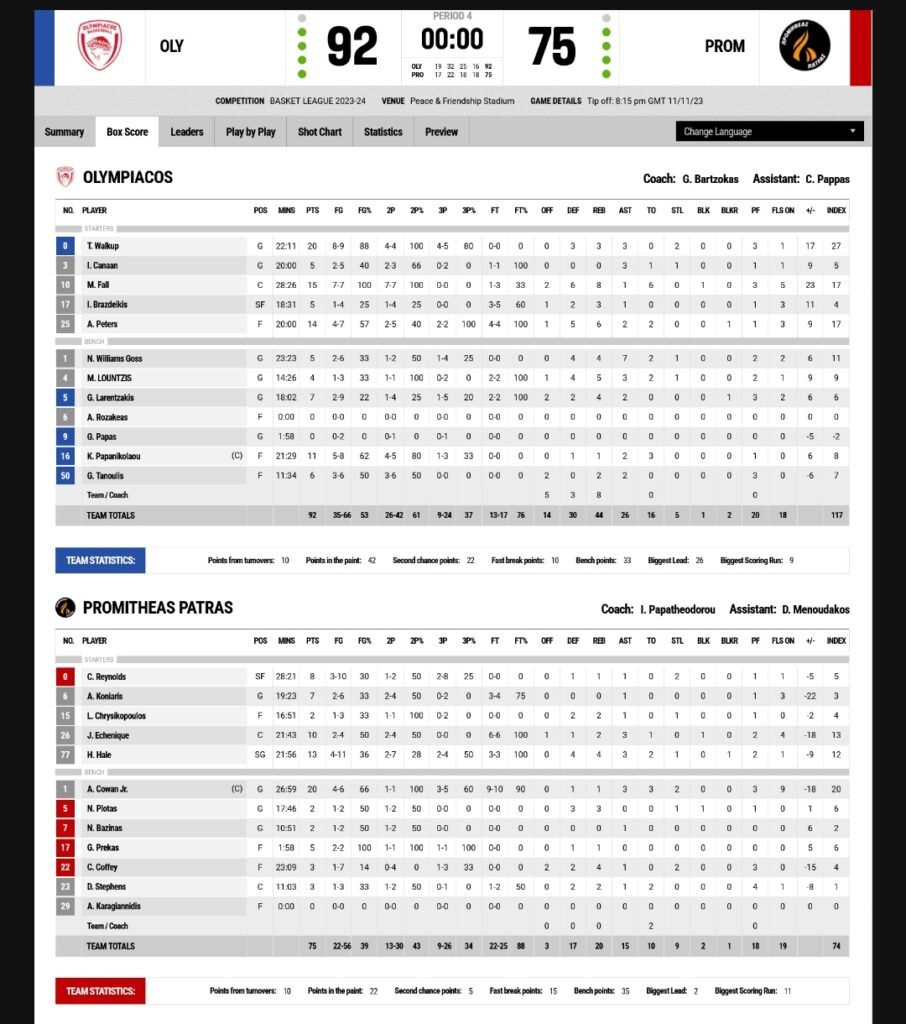 Και δεν σταμάτησε εκεί… Με τον Τόμας Γουόκαπ να δίνει επιθετικό ρεσιτάλ και τον Τόμας Πίτερς να παίρνει τη σκυτάλη όταν ο πρώτος αποσύρθηκε στον πάγκο, η ομάδα μας εκτόξευσε τη διαφορά στους 26π. (73-47) στο 27’! Με πρωταγωνιστή τον Μουστάφα Φαλ, ο οποίος κυριάρχησε και στις δύο ρακέτες, ο Ολυμπιακός βρέθηκε ξανά στο +26 (85-59) στο 33’ και ο Γιώργος Μπαρτζώκας άδραξε την ευκαιρία και έκανε συντήρηση δυνάμεων εν όψει της διαβολοεβδομάδας της Ευρωλίγκας.