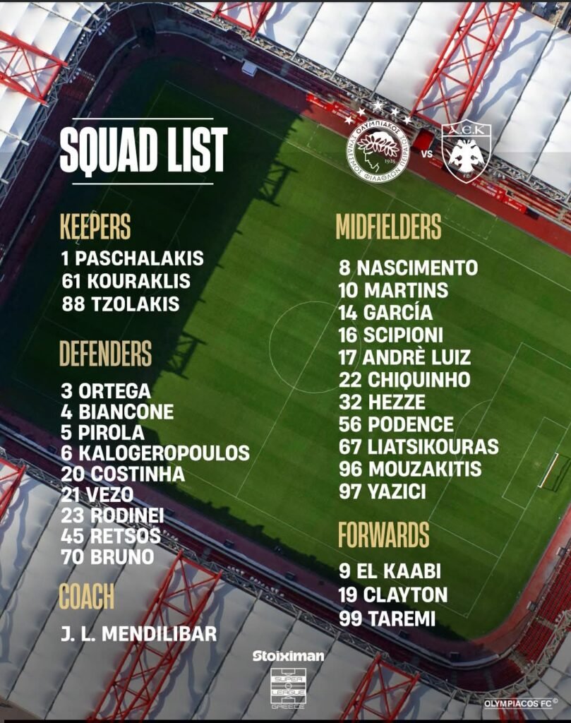 Δείτε την ερυθρόλευκη αποστολή για την πρεμιέρα των πλει οφ: