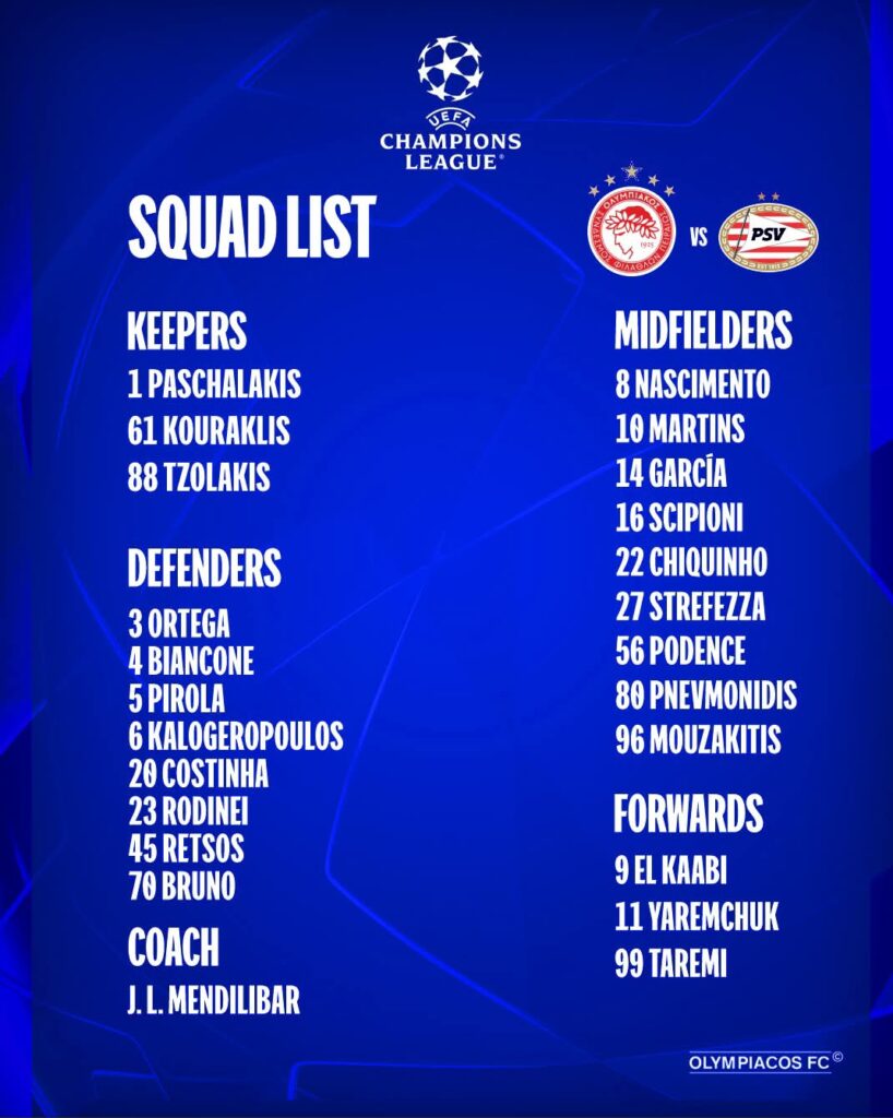 Δείτε την αποστολή για την αναμέτρηση με την PSV: