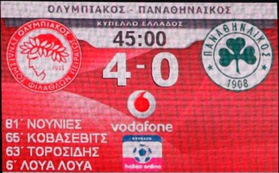 Σε επίπεδο Κυπέλλου, οι «ερυθρόλευκοι» κερδίζουν κι εκεί κατά κράτος με 19 νίκες σε 38 παιχνίδια, με τον αιώνιο αντίπαλο να έχει σημειώσει 9. Υπενθυμίζεται ότι την τελευταία φορά που τέθηκαν αντιμέτωποι στη διοργάνωση ήταν το μακρινό 2008 πάλι για τους «16», σε έναν θρίαμβο του Ολυμπιακού με 4-0 στο «Γεώργιος Καραϊσκάκης».