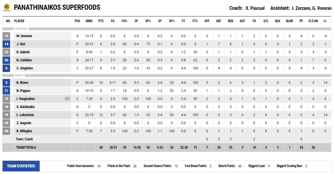 Στον υπολειπόμενο χρόνο, οι παίκτες του Σφαιρόπουλου επιτέθηκαν από κοντά στο καλάθι και κατάφεραν να κλείσουν στο +2 (30-32) το Α΄ μέρος.