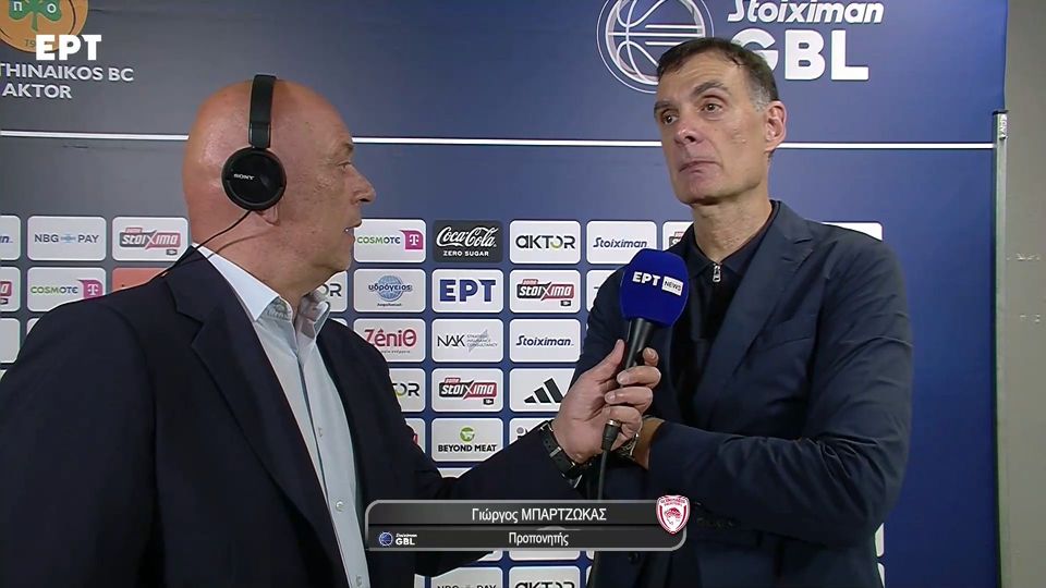 Ο Γιώργος Μπαρτζώκας μίλησε μετά το τέλος του πρώτου τελικού και την ήττα από τον Παναθηναϊκό στο ΟΑΚΑ. Μιλώντας στην ΕΡΤ ο προπονητής του Ολυμπιακού, είπε: