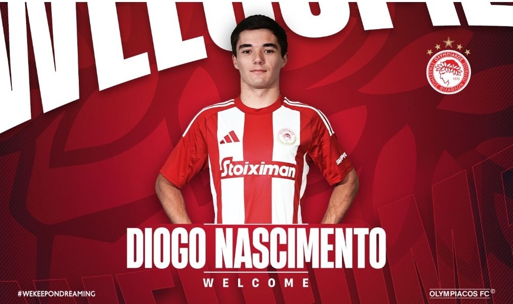 Η ΠΑΕ Ολυμπιακός ανακοινώνει την απόκτηση του Ντιόγκο Νασιμέντο. Ο Πορτογάλος μέσος γεννήθηκε στην Leiria, στις 2 Νοεμβρίου 2002.