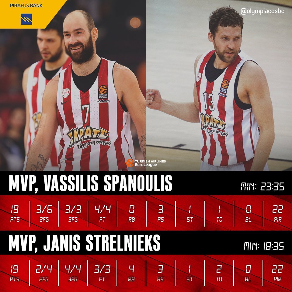 Βασίλης Σπανούλης και Γιάνις Στρέλνιεκς, μοιράστηκαν το βραβείο του MVP της αναμέτρησης με την Φενέρ.