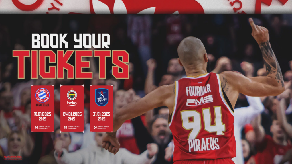 Παρασκευή 31/01/2024 OLYMPIACOS BC – ANADOLU EFES ISTANBUL (21:15)