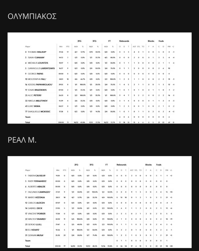Ο Ολυμπιακός δεν τα κατάφερε κόντρα στην Ρεάλ. Ηττήθηκε στο ασφυκτικά γεμάτο ΣΕΦ με 71-77, στο πλαίσιο της 12ης αγωνιστικής και πλέον στρέφει όλη του την προσοχή στο εντός έδρας ματς της Παρασκευής με αντίπαλο την Μπάγερν.