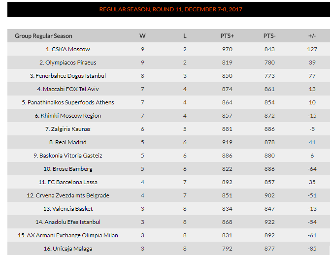 Ο Ολυμπιακός συνεχίσει τη νικηφόρα πορεία του στην εφετινή Euroleague και παραμένει σταθερά στην κορυφή της βαθμολογίας έχοντας ως συγκάτοικο την Τσσκα Μόσχας. Οι δύο ομάδες θα διασταυρώσουν τα ξίφη τους στις 20 Δεκεμβρίου στο ΣΕΦ.