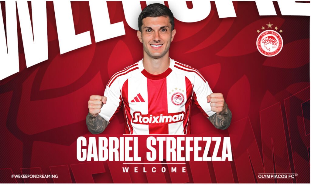 Η ΠΑΕ Ολυμπιακός ανακοινώνει την απόκτηση του Γκάμπριελ Στρεφέτσα. Ο Βραζιλιάνος εξτρέμ γεννήθηκε στο Σάο Πάουλο, στις 18 Απριλίου 1997.