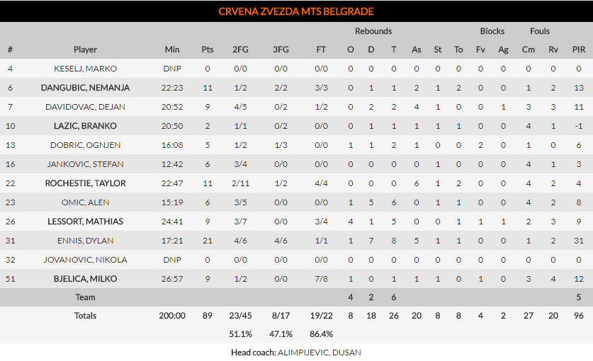 Στον χρόνο που απέμενε, το παιχνίδι έγινε ρώσική ρουλέτα με τις δύο ομάδες να σκοράρουν διαρκώς. Σε δύο περιπτώσεις όμως, Πρίντεζης και Μιλουτίνοφ αστόχησαν εξ’ επαφής κάτω από το καλάθι, κάτι που εκμεταλλεύτηκε ο Ερυθρός Αστέρας και με τις βολές του Μπιέλιτσα, ανέβασε στους επτά την διαφορά (82-75). Ο Σπανούλης προσπάθησε να απαντήσει με τρίποντο, αλλά δεν βρήκε στόχο, σε αντίθεση με τον Ένις που σκόραρε πίσω από τα 6,75 προ του Ρόμπερτς, στέλνοντας στο +10 την διαφορά και κλειδώνοντας τη νίκη για την ομάδα του.
