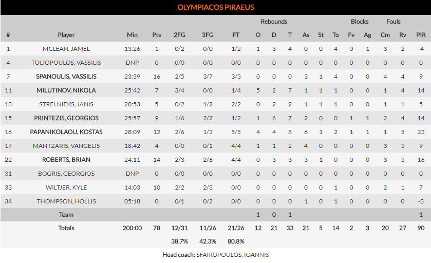 Ο Ολυμπιακός αν και βρέθηκε και με διψήφια διαφορά πίσω στο σκορ, ανέτρεψε τα δεδομένα στο Β’ ημίχρονο, αλλά τα λάθη του στα τελευταία έξι λεπτά της 4ης περιόδου, του στέρησαν τη νίκη (89-78).