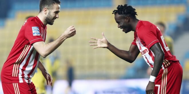 Διάβασε περισσότεραΤρία 24ωρα μετά το εμφατικό πέρασμά του από την Τρίπολη (4-0 τον Αστέρα), οι «ερυθρόλευκοι» επικράτησαν εκτός έδρας κι επί του Παναιτωλικού με 2-1 στο πλαίσιο της 16ης αγωνιστικής (τέταρτη σερί νίκη) κι αποσπάστηκαν ξανά στο +9 απ’ τον δεύτερο Άρη και στο +13 από τον τρίτο ΠΑΟΚ. Ο Φορτούνης (4’) κι ο Ελ Αραμπί (65’) τα γκολ των Πειραιωτών, ...
