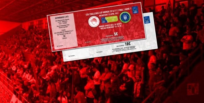 Ο ΟΛΥΜΠΙΑΚΟΣ Σ.Φ.Π., για τον πρώτο τελικό του CEV Challenge Cup απέναντι στην BURSA BBSK που θα διεξαχθεί στο Κλειστό Γυμναστήριο «Μελίνα Μερκούρη» στο Ρέντη, την Τετάρτη 12/4/2017 και ώρα 19:30, ενημερώνει τους φιλάθλους του συλλόγου μας για τα εξής: Για την συγκεκριμένη αναμέτρηση, ΔΕΝ θα ισχύσουν η Κάρτα Μέλους και τα VIP εισιτήρια διαρκείας* της σεζόν 2016-2017. Τα εισιτήρια ...