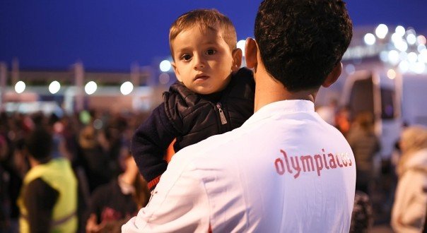 Για 18η μέρα στη σειρά βρέθηκε δίπλα στους πρόσφυγες ο Ολυμπιακός μοιράζοντας τρόφιμα και ρούχα.