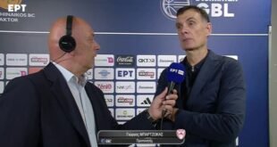 Ο Γιώργος Μπαρτζώκας μίλησε μετά το τέλος του πρώτου τελικού και την ήττα από τον Παναθηναϊκό στο ΟΑΚΑ. Μιλώντας στην ΕΡΤ ο προπονητής του Ολυμπιακού, είπε: «Έπρεπε να εκτελέσουμε καλύτερα, υστερήσαμε σε ριμπάουντ, δημιουργία, άμυνα. Σουτάραμε πολύ άσχημα. Για να κερδίσεις εδώ τον Παναθηναϊκό πρέπει να βάλεις τα σουτ μετά από κυκλοφορία και τα χάσαμε όλα και με καλούς σουτέρ. ...