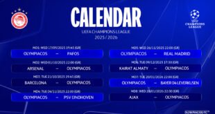Διάβασε περισσότεραΤο πρόγραμμα του Ολυμπιακού στο Champions League