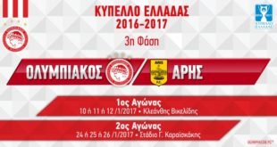 Την Τετάρτη 11 Ιανουαρίου στις 19:30 θα γίνει ο πρώτος αγώνας ανάμεσα στον Άρη και τον Ολυμπιακό, για την φάση των «16» του Κυπέλλου.