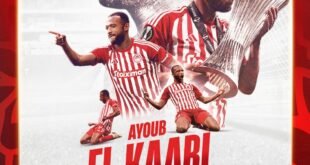 Επίσημη η Ανανέωση του Αγιούμπ Ελ Κααμπί με τον Ολυμπιακό!!! Ο Ολυμπιακός ανακοίνωσε επίσημα την ανανέωση του συμβολαίου του Αγιούμπ Ελ Κααμπί, κρατώντας στις τάξεις του έναν από τους πιο επιτυχημένους και παραγωγικούς παίκτες της περσινής σεζόν. Ο Μαροκινός επιθετικός, που κατέκτησε τον τίτλο του πρώτου σκόρερ στο Europa Conference League, θα συνεχίσει να προσφέρει τις υπηρεσίες του στους «ερυθρόλευκους». ...